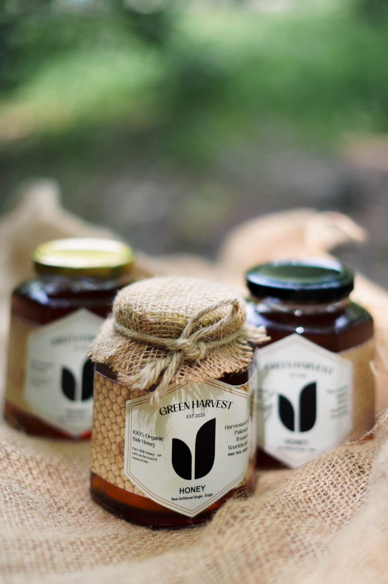 Green Harvest Sidr Honey is harvested from the ancient Sidr trees of Pakistan, renowned for producing one of the richest, most medicinal honeys in the world. Each jar is carefully collected by ethical beekeepers, ensuring you get honey that is 100% raw, pure, and unprocessed.